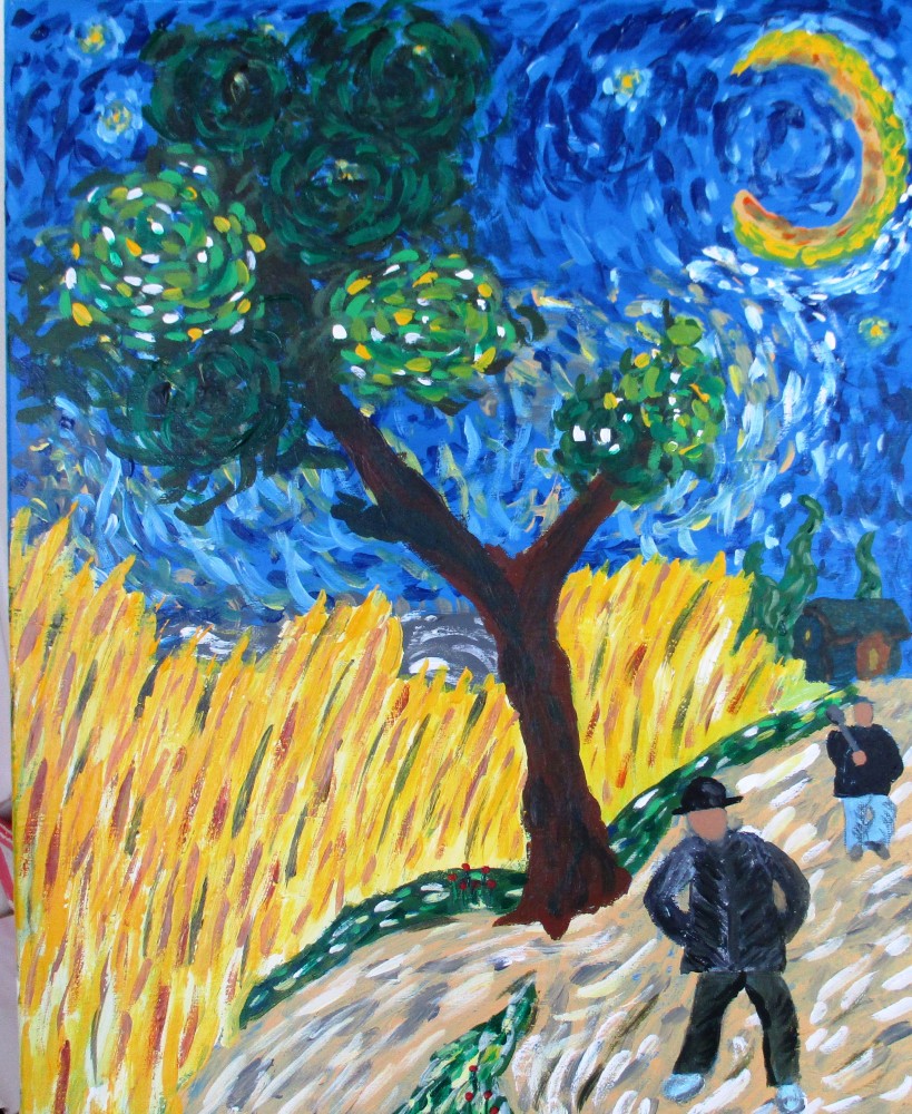 Dit was een workshop schilderen met van Gogh als onderwerp.
